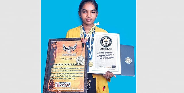 ONGOLE: Seventeen-year-old Audipudi Devisri’s tryst with art has earned her an entry into the Guinness Book of Records. The girl from Ongole used land as her canvas and coffee powder as medium to draw a big portrait of Mahatma Gandhi.  Devisri’s feat has also earned her recognition from the Miracle and Limca Book of Records.