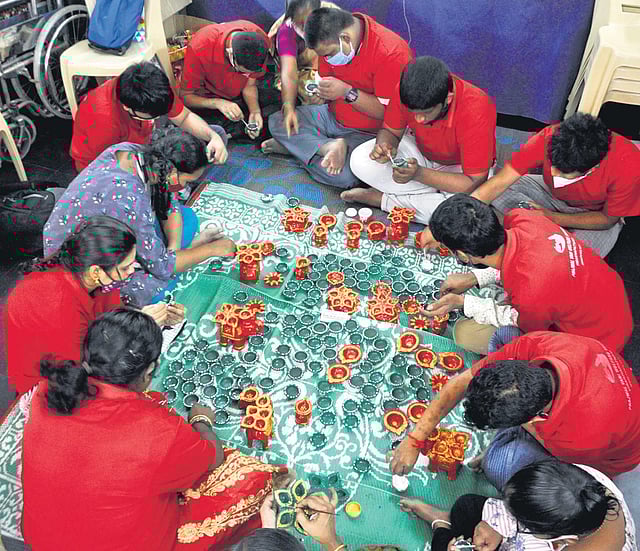 Suchitra says they also aim at promoting traditional potters ‘Kummaris’ and a green Diwali through the programme. “We will be surprised at the amount of effort the children put into the process. Some girls have come up with beautiful intricate designs and people find it difficult to believe that special children did the artwork,” she says.