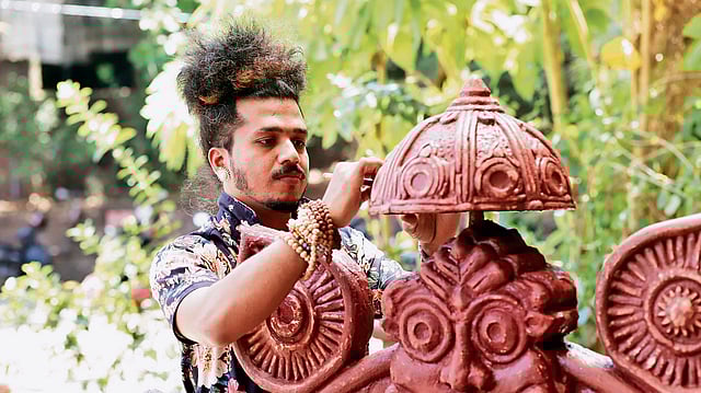 In the artistic enclave of Adpai village in Ponda, North Goa, Sagar Naik Mule carries forward a centuries-old legacy of craftsmanship. Kaavi stands out for its unique technique and deep-rooted cultural significance. “Kaav means red clay,” explains Mule. “I belong to an artists’ village—Kalakaransa, as we call it locally,” he says. Historically, this region was known for its wooden boat-building traditions, a craft that predates Portuguese colonisation. “Craftsmanship and draftsmanship flourished here, passed down through generations. That's how I became aware of art. In the old days, people in Goa used to build homes, walls, and stoves with clay. During festivals, a fresh layer of clay would be applied to walls, and this practice evolved into an art form,” he says.