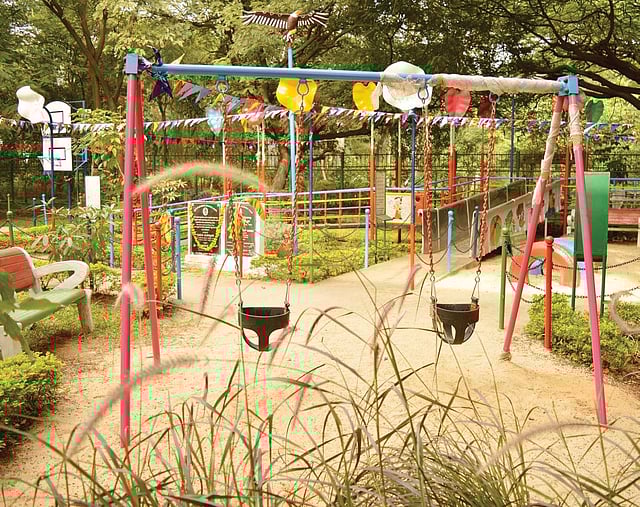 The park, which was established in Rajaji Nagar’s Prakash Nagar ward in 2012 by Kilikili, an organisation that builds inclusive play spaces. However, the park was recently “re-energised” by Tamahar. Vaishali Pai, who started Tamahar, says the organisation will take disabled children to the park every Friday.
