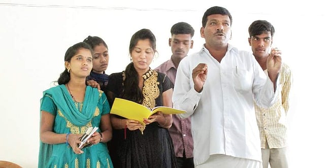 Hailing from Aagadu, Mysuru, this self-taught singer has no professional training and learnt singing from listening to singers in his village. He began writing short poems in school and later developed these into songs dealing with local culture and traditions. All his lyrics are written by himself which are inspired by his surroundings and incidents. “I am not influenced by movies or any other sources of entertainment and I perform because I enjoy music,” says Shivaswamy. “The songs I sing are pure and people who listen to it find solace in them.”