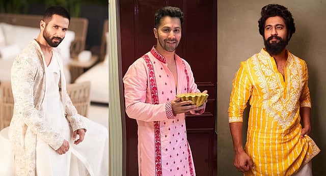 Going bold with colours in ethnic wear is one of the top picks this season, says Agarwal. “For Deepavali, there is a range of bright colours like yellow, red, and orange along with pastel shades like lavender. Mostly the looks of icons like MS Dhoni, Varun Dhawan, Kartik Aryan, and Ranveer Singh are common references,” explains Agarwal, adding “Short and asymmetrical kurtas with unique embroidered patterns for that designer touch are in trend along with pyjama pants in white, beige, cream, or olive green colours. But again that depends on the combination of colours one is wearing.”