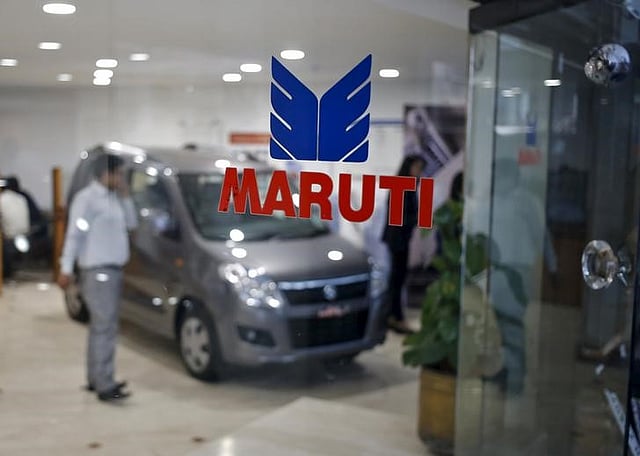 The logo of Maruti Suzuki India Limited is seen on a glass door at a showroom in New Delhi | Reuters