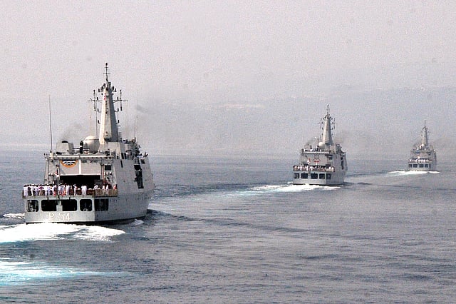 The Seventh Fleet's area of responsibility includes the Western Pacific and Indian Ocean and at any given time, there are roughly 5070 ships and submarines, 140 aircraft and approximately 20,000 sailors under its command.