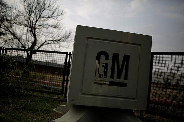 The GM logo is seen at the General Motors Assembly Plant in Valencia. (Photo | Reuters)