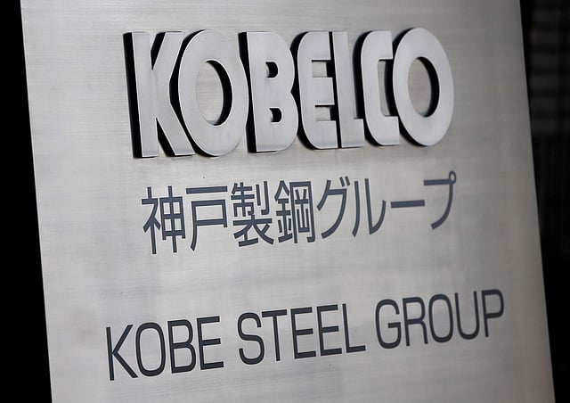 The logo of Kobe Steel is seen at the group's Tokyo headquarters building in Tokyo. (Photo | Reuters)