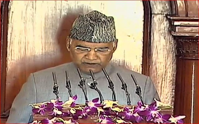 President Ram Nath Kovind delivering a speech in the Central Hall of Parliament. (Photo | Youtube videograb)