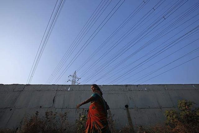 A woman walks under high-tension power lines leading from a Tata Power sub station in Mumbai's suburbs. Image used for representational purpose. (File Photo | Reuters)
