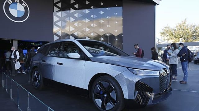 The BMW iX Flow featuring E Ink can only change colors through a scale of white, grey and black, but officials said the technology theoretically could offer other colors.