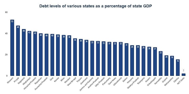 On the other extreme are states like Punjab, Mizoram, and Nagaland have debt levels hovering near the 50% mark.