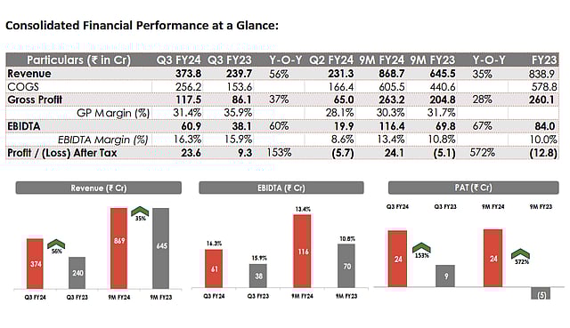 The company witnessed healthy same store sales growth of 47% in Q3 FY24 and 29% for the nine months period.