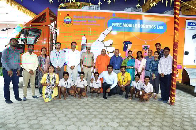 The Mobile Robotics Lab was flagged off by Mr. G.H. Rao, Senior Advisor,HCL Tech., Mr. V Srinivasan,Assistant Commissioner of Police, Mylapore, in the presence of Swami Satyajnanananda, Secretary of the Ramakrishna Mission Students Home and Dr. Nidhi Pundhir, Vice President, Global CSR, HCL Foundation, and other dignitaries.