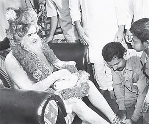 He can ‘cure’ ailments by giving the “blessed concoction” to the suffering and he’s living without food and water for more than five years now. And his disciples find no reason not to believe him. Little do these gullible ‘shishyas’ realise that it is their reasoning that is impaired more than anything else. A testimony of their foolhardiness is that the ‘blessed’ ones believe he’s lived without food and water for five years now. “Eight years ago, when Lord Shiva beckoned my guru — Mahananda Sidhar — he had no choice but to comply,” says Raman, a devotee. The guru, as some of his disciples believe, has godly powers. When Sidhar came to Bangalore on Sunday, after an eight-year-long solitary meditation, a couple of children with speech impairment sought his blessings. After consuming the “blessed concoction,” one of the children blabbered ‘Amma’ and ‘Appa.’ The medical history of they being mute or speech impaired has not been established yet. “Sidhar is an incarnation of Lord Shiva,” claims Raman.
