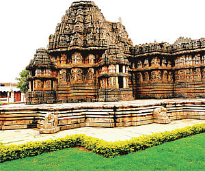 The next destination is a tiny village called ‘Hosaholalu’ of Mandya district, which lies at about 23 km from Shravanabelagola. It’s a village that houses a ruin temple of the once glorious Hoysalas. As you maneuver through this village’s crooked streets, caught in your sight; as it takes a seat at the centre surrounded by large and small village house is the ‘Lakshminarayana Temple’, built by King Vira Someshwara of the Hoysala Empire. In true Hoysala style this Vaishnava temple reflects distinct Hoysala architecture such as the material used for construction is chloritic schist or Soapstone, the ‘trikuta vimana’ or three shrines, the presence of a jagati or a platform that elevates the whole temple by about a meter. Further there are 24 sculptures of Vishnu standing upright holding in his four arms the four attributes, a conch, a wheel, a lotus and a mace in all possible versions. Other detailed miniature sculptures on the wall include depictions of birds, aquatic monsters, Hindu epics and mythology, leafy scrolls and processions of horses and elephants at the base. Though the temple complex is small, it is an interesting piece of work. You get here great detailed art work that together make a beautiful narration transcending the barrier of language.