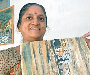 The bubbly 51-year-old teacher not only encouraged him to participate in more than 100 competitions, but also treasures newspaper clippings of Lokesh’s achievements in her very own scrap book. When she showcases his best work, a realistic water colour painting of the Royal Bengal Tiger, the gleam in her eyes says it all.