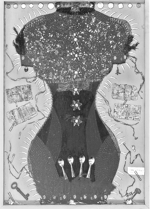 Delhi-based artist Kanchan Chander is known for her versatility. She has consistently, and indeed successfully, shown an impressive diversity in her art practice that ranges from large-scale paintings replete with spiritual, feminine forms to intricate, miniature style works in mixed media. And while she has also dabbled in drawings, etchings and lithographs in her early years as a printmaker, it’s her mixed media work — using objects like buttons, old coins and notes, sequins, swarovski, laces, appliqués, bindis, stickers, nuts and bolts — on canvas and paper that has now become synonymous with her oeuvre.