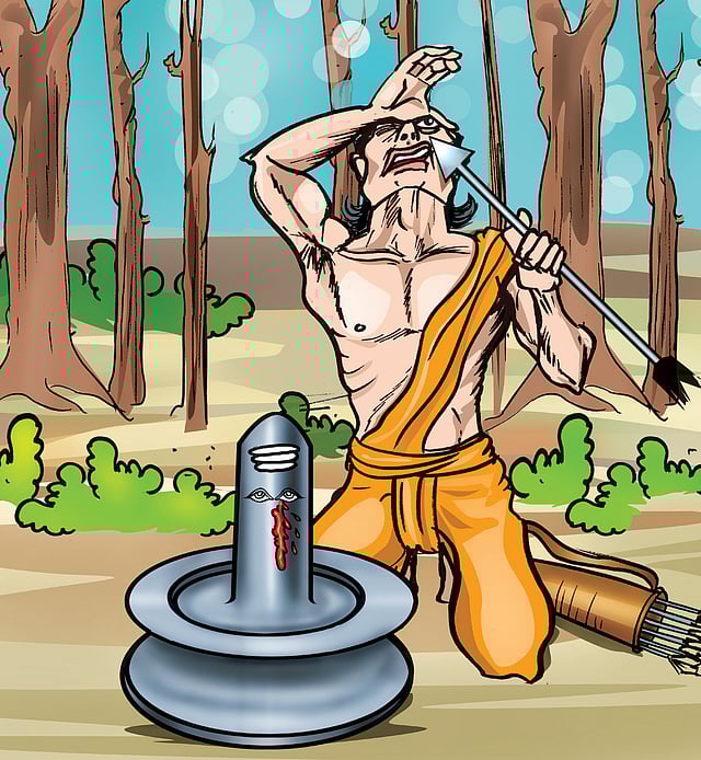 Lord Shiva touched the bleeding spot where his right eye had been.