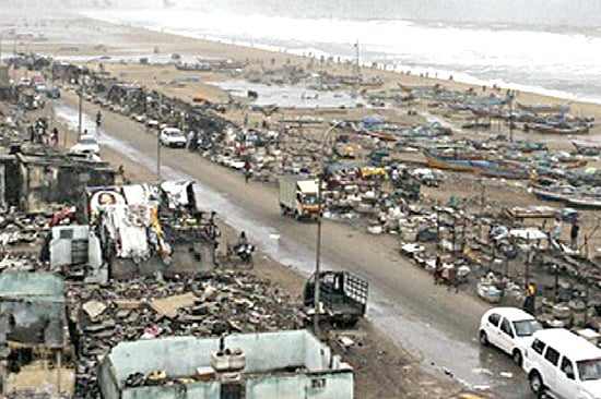 Not surprisingly, the Bay of Bengal is considered the birth place of the deadliest storms on record. The 1999 Cyclone 05B, also known as the Paradip cyclone, is probably the worst ever recorded, with a minimum pressure of 912 millibars. It was characterised as a Category Five storm, with maximum wind speeds of 260 kph against Nilam’s 100 kph. The storm surge was recorded at 8 metres (26 feet), against Nilam’s one metre. As the cyclone hit a couple of kilometres off Orissa’s Paradip port, it brought along a wall of water 26 feet high, which travelled up to 20 km inland in some places, inundating entire taluks and killing thousands of people (estimates vary from 10,000 to 50,000). In one place, Padmapur, a third of the residents were killed in the storm. Only two higher storm surges have ever been recorded, the Calcutta cyclone of 1864 (40 feet high) and the Backergunge cyclone of 1876 (30 to 40 feet). It was, in fact, a double whammy for Orissa as the state had been battered, a couple of weeks earlier, by a Category Four storm. Five million farmers lost their livelihood as a result. This was a super-cyclonic storm, a relatively rare event, as most are lower category events. For instance, Bhola was only a Category Three storm, but the destruction was so great because there were hardly any preventive measures. Since then, governments have become more active about early warning and evacuation and the Meteorological Department keeps a much closer eye on cyclones in the monsoon season. It should be remembered that the public normally hears only about storms that threaten inhabited areas as every monsoon season has its quota of storms. There could well be cyclones in the remote corners of the Bay that no one hears about because they pose no threat to humans.