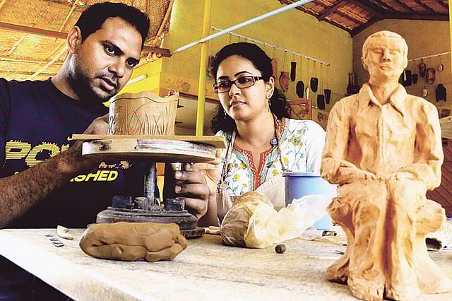 Overcast skies, fleet-footed sunrays and a chilly kiss in the air, with Bangalore being its beautiful self, the balmy morning is tailor-made for the pursuit of the fine arts. A tiny road leads away from the ruckus of blaring horns and turns at a Laurie Baker-styled house. A white plaque with the insignia of a child’s hand cradling a jar, announces the world within — Claystation.