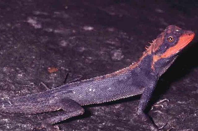 The forest calotes is found from Gujarat southwards to Kerala and Tamil Nadu, throughout the Western Ghats. It occupies forested habitat, so the next time you venture out to a forest near your home, be sure to keep your eyes and ears peeled; a forest calotes may just be waiting to say “Hello” to you!