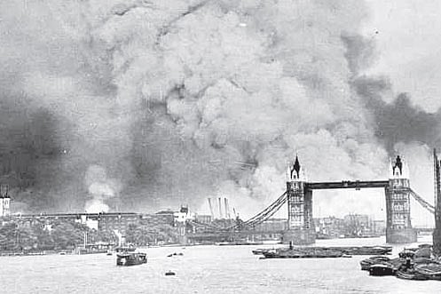 Three days later, Hitler fulfilled his promise. The scale of bombing that pounded London was mind-boggling and frightening — 350 German bombers, escorted by 600 fighters blotted out the warm September sky as they came up the Thames estuary. They were 2 miles high and the head of the force stretched across 20 miles. At 5 pm the bombs began to fall. They fell on the country’s largest munitions factory and on the docks that proliferated along the banks of the river Thames.