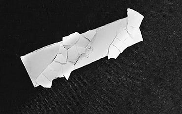 To create a pattern, I apply glue diagonally. On the portion where glue is applied, keep a piece of egg shell and press it tightly. The brittle egg shell will break, thus forming a mosaic pattern.