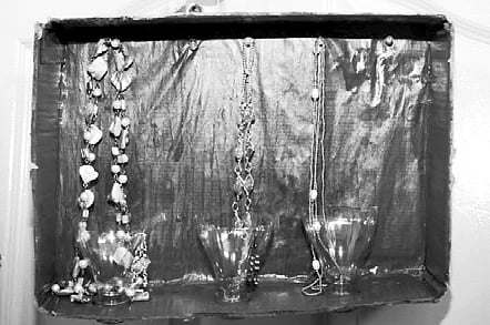 Step 2: Pin the softboard pins on one end of the box so that you can hang long chain or necklaces