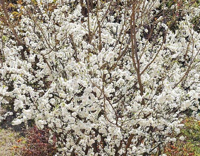 The spectacular sight of the white blossoms of the plum tree greeted me in our garden. When I left home a week ago, the plum tree just had buds, and in a week’s time, the tree was transformed!