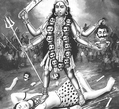 She was so furious, maddened by rage, that she began destroying everything in her sight. She had to somehow give vent to her emotions or she would explode. Now even the gods were scared of Kali! They did not know what to do. She was so out of control that only Shiva, who was Shakti’s masculine form, could do anything about it.