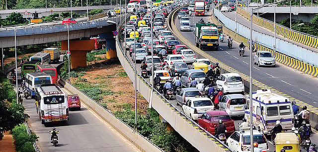 On the way to the airport, vehicles coming from K R Puram and Tumakuru Road too join the traffic coming from Mekhri Circle side.