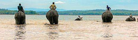 Swashed with monsoon rains, the lush green environs of Sakrebailu forests on the banks of Tunga River have provided a home for many abused, conflict and captive elephants in Karnataka.