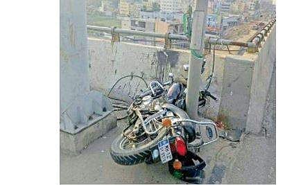 A 27-year-old Venkatraju was killed after crashing his speeding new bike. He fell down from the 50-feet Kasturi Nagar flyover after ramming into a parapet wall in KR Puram near Tin Factory.