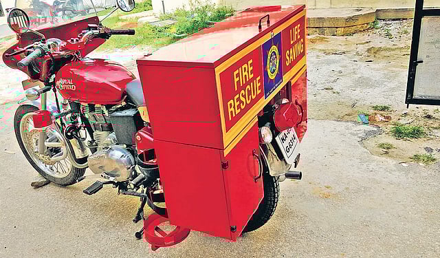 BENGALURU: Bengaluru is all set to get a one-man system for rescue operations during fire breakouts and other emergencies. To be soon rolled out by the Karnataka Fire and Emergency Services, it is a part of its overall ‘quick and lean’ response approach to deal with such emergencies. The initiative consists of a two-wheeler (a Royal Enfield Bullet) and state-of-the-art equipment such as a fire extinguishing foam cylinder that is many times effective than water, called CAFS or Compressed Air Foam System.
