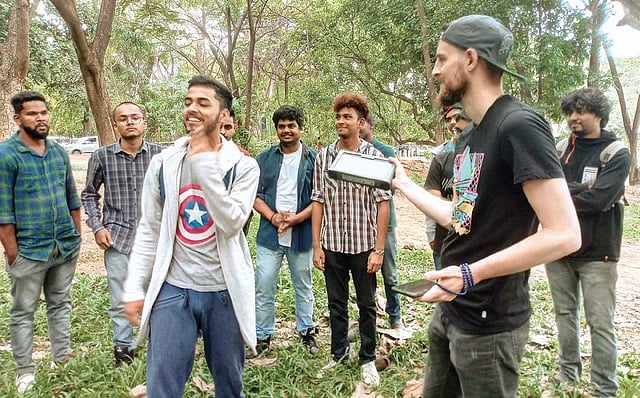 With tracks playing through Bluetooth speakers, the rappers went freestyle. Lyrically woven into their rap were narratives of food, poverty, power and revolution in Kannada, Hindi and English. “This space is meant to express our feelings, regardless of the barriers of caste and religion that are so prominent out there,” said Manoj Kumar, a rapper and a neurolinguistics teacher. The music attracted various people, and teenagers and young adults quickly updated their Instagram stories with live feeds of the jamming session.