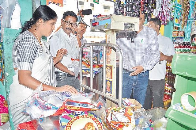 On Monday, a BBMP team led by Mayor Gangambike Mallikarjun, raided various places in the city, seizing plastic items and creating awareness among shopkeepers and customers on the plastic ban.