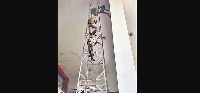 The ladder was kept at the station to carry out cleaning of the ceiling, said a cop.