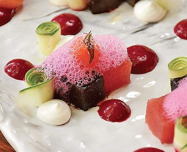 For vegetarians, it was a cheerful combination of chunky beet mash and vegetarian jus, called the Root vegetable garden.