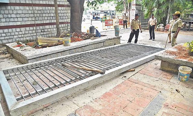 Substandard quality of work is being blamed for the mishap, and a case of negligence is filed against the contractor. The gate was being replaced with a new one and work has been going on from the past three months, according to Sadashivnagar police investigating the case.