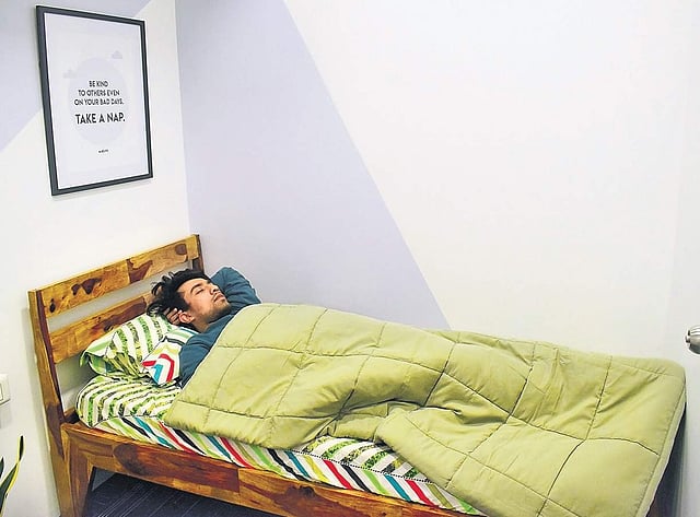According to Wakefit, an online mattress company, which has designed some nap rooms across the city, along with designer Plavita from Plavi Design Studios, Indians are the second-most sleep-deprived people in the world. Their pan-India survey found that over 86 per cent of people were keen on nap rooms at the workplace, to help them improve efficiency. “Over the years, a lot has been discussed around stress and work-life balance but very little has been done to address the issue,” says Chaitanya Ramalingegowda, director and co-founder, Wakefit.co.