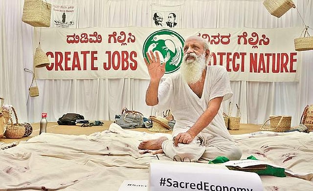 BENGALURU: Noted theatre personality Prasanna started an indefinite hunger strike with the theme “Create Jobs- Protect Nature” on Sunday at Vallabh Niketan near Gandhi Bhavan here to promote “sacred economy”.