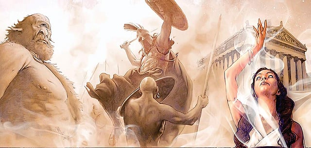 In Elysium, two-four players take on the roles of Greek demigods who are competing to earn the favour of the Gods and win legendary allies and treasures to their side. Each round, a certain number of cards are laid out and players take turns drafting cards from that central pool.