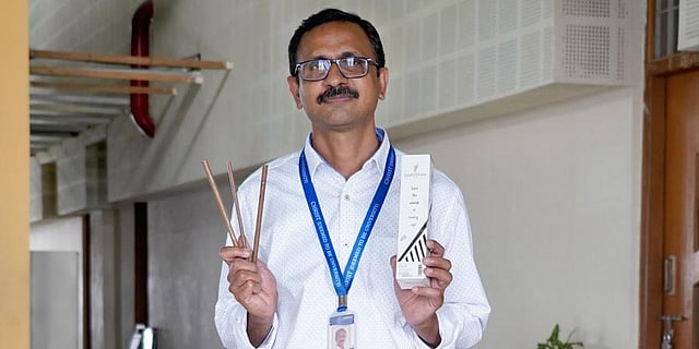 In 2018, when Prof Saji Varghese noticed a coconut tree drop its leaves on the college campus, he thought of their use. “Each year a coconut tree naturally loses an average of six leaves. I carried out a study and found out that coconut leaves are just burnt unused in rural areas. Then I decided to come out with an eco- friendly product from it,” Prof Varghese said.