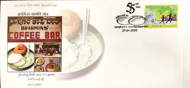 BENGALURU: No list of popular breakfast eateries in Bengaluru is complete without Brahmins’ Coffee Bar. And now, the postal department has released a special cover to commemorate 55 years of the establishment since its inception. The cover has the picture of the iconic Brahmin’s idly and vada, with a pictorial cancellation of two idlis bearing the date 27-01-2020 (Brahmins’ Coffee Bar was set up on the same date in 1965).