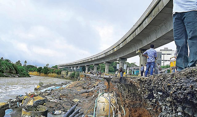 The commissioner said apart from heavy rain, the water level in the river had also risen by three-four feet which increased the pressure on the retaining wall, leading to its collapse. “Temporary bunds are being put up to ensure that there is no further damage. A meeting of all officials from BBMP, NHAI and BMRCL will be held to find a permanent solution,” he added.