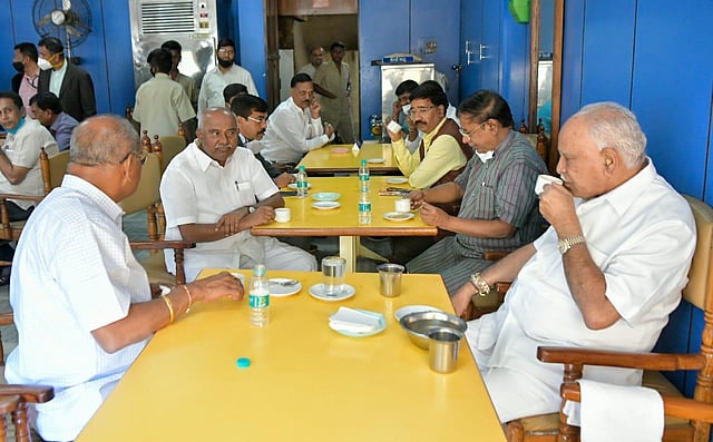 BJP MLC Adagur H Vishwanath, who has recently been critical of the CM, was also seen at the hotel having breakfast and soon joined the Chief Minister and Umesh Katti.