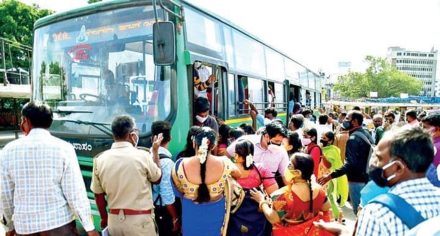 BENGALURU: With Unlock 2.0 starting from Monday, social distance went for a toss as people crowded bus-stops and traffic gridlocks greeted motorists on Bengaluru streets. “Shops, bars, hotels, gyms and other commercial establishments opened with 50 per cent capacity. Self-service eateries (darshinis) saw a 10 per cent increase in business, but not at par with the pre-pandemic times,” said Bruhat Bengaluru Hoteliers’ Association president PC Rao.