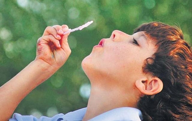 Woodchopper breathing Have your little one clasp their hands together in front of their body. Take a long breath in while raising hands above their head. Then, on a vigorous exhale with mouth open, as if fogging on a glass, forcefully take hands down and bend down towards the legs. Drop the head and let go of all the tension in the body. Woodchopper breathing is a natural decongestant. (The author is a senior physiotherapist, Aster RV Hospital)
