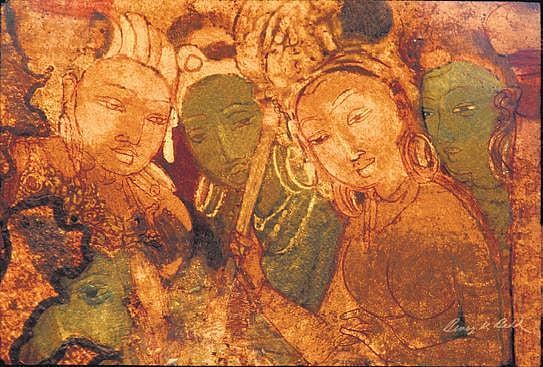 When Behl visited the four caves in Badami in 2001, most of the paintings, including those of Vishnu and Brahma were damaged. However, a painting he restored, titled Queen and Attendants (see pictures), was exhibited during the session earlier this week. One of the images released during the online event features King Mahajanak from depicting how he renounced his kingly life to become as ascetic.