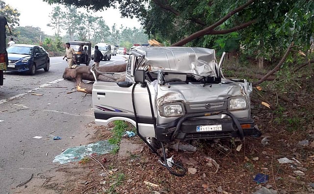 BENGALURU: In a tragic incident, a 40-year old man and his 2-year-old son died on the spot, after the branch of a roadside tree fell on the Maruti Omni in which they were returning to the city. The incident happened at Kumbapura Gate on the Bengaluru- Mysuru highway, around 6 am on Monday. Three others, including his wife and two daughters, sustained minor injuries. The family had gone to Mandya for a village festival on Sunday.