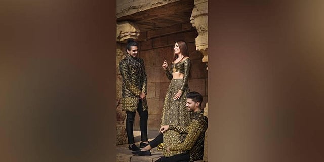 I wanted to do something which is Indian and showcased the royal effect. Before I started working on it, I had imagined a temple kind of set up so I decided to play with black and gold,” says Kapoor, who is known for playing with sequin but she worked with embroidery instead. She usually takes two months to embroider one lehenga and makes sure all the thread works are secured. “Embroideries are a little tricky because the whole design would be interlinked through a knot.